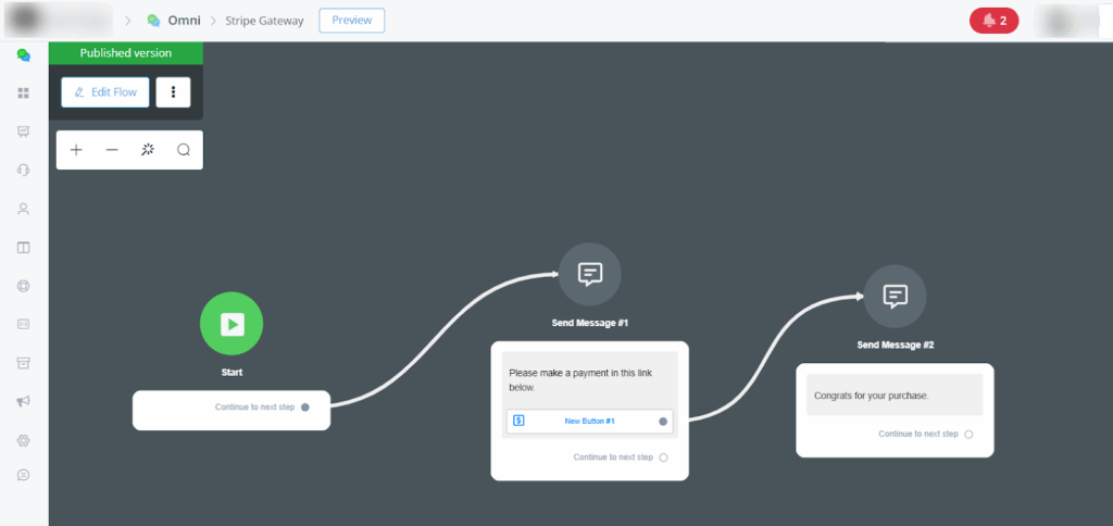 - Access the flow builder area and select or create a new flow where the payment will be integrated.