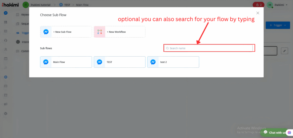 Once done it will open up a pop-up window for you where you can select your desired flow to be connected once this trigger has been activated.