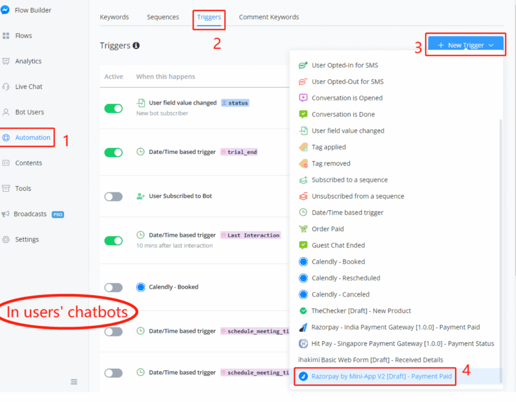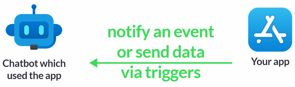 Triggers are used to transfer information. When you send data from your app to users’ chatbots, you use triggers: