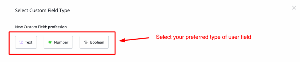 Just name your new user field. The next step is to select what kind of user field you like to create. Currently, we have the following available for you: