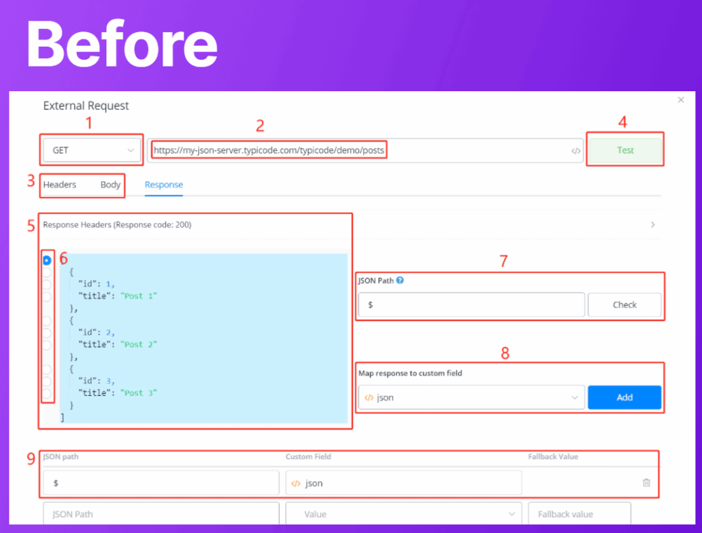 Mini-Apps is packaged External Request. In an external request action, you need to configure all the parameters, set inputs and outputs which can be a hassle. Besides, users without coding knowledge might don’t know how to call an API correctly.