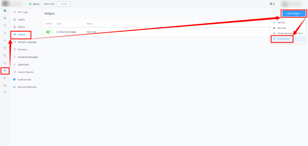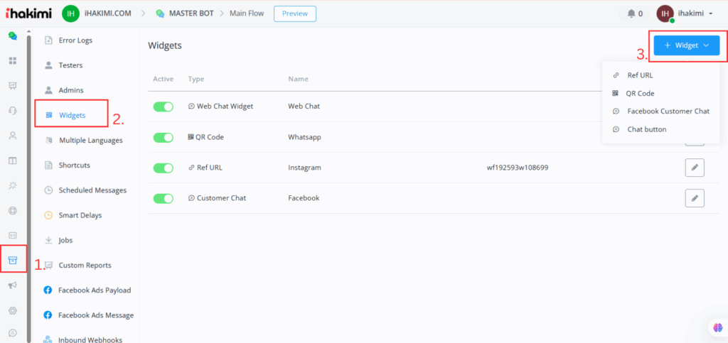 • In the ihakimi dashboard, go to the left sidebar and select Widgets.