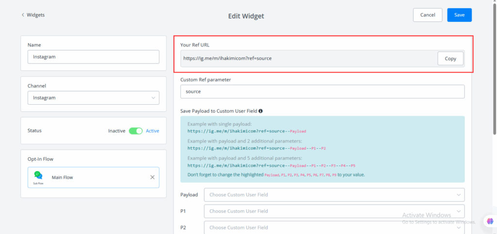 After filling in all the information, click “Save” and click the pencil to edit this widget, you will see a unique URL generated for this widget: