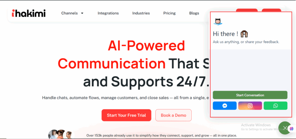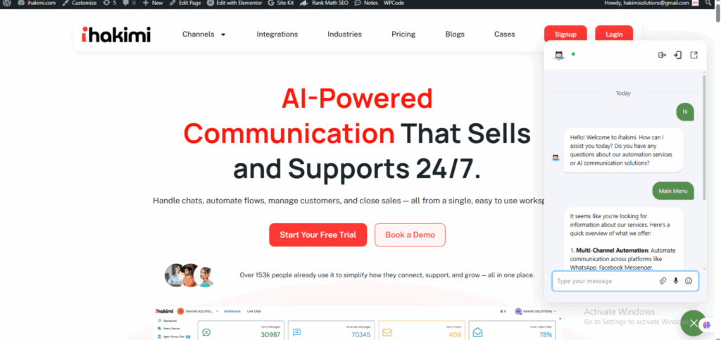 This widget is to be embedded on your website, so that your website can have a bot serving users as ihakimi Website do: