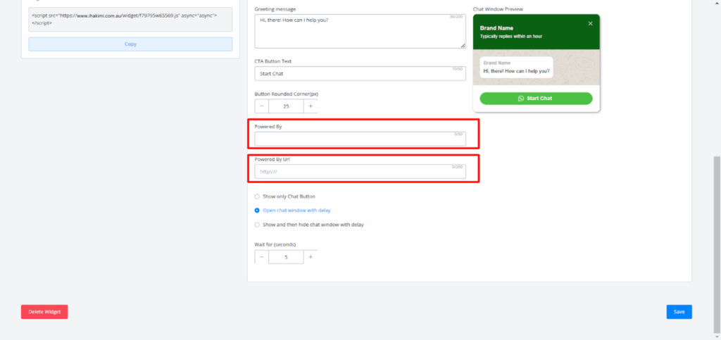 Configuring the “Powered By” Feature on ihakimi Chat Button Widget