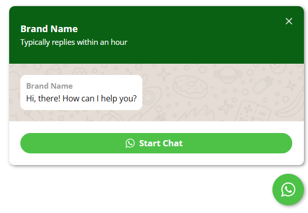 • Button Widget: Redirects users to a specific channel of communication when clicked. The “Powered By” text in the Button Widget can be customized starting from the Business Plan. For example: