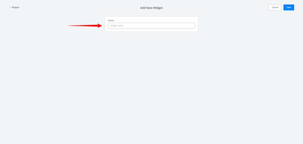 • In the Add New Widget screen, enter a name for your widget in the Name field, then click Save.
