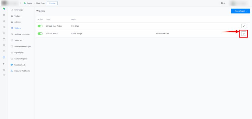 • After creating the widget, locate it in the widget list and click on the Edit icon (pencil icon) next to the widget you want to configure.