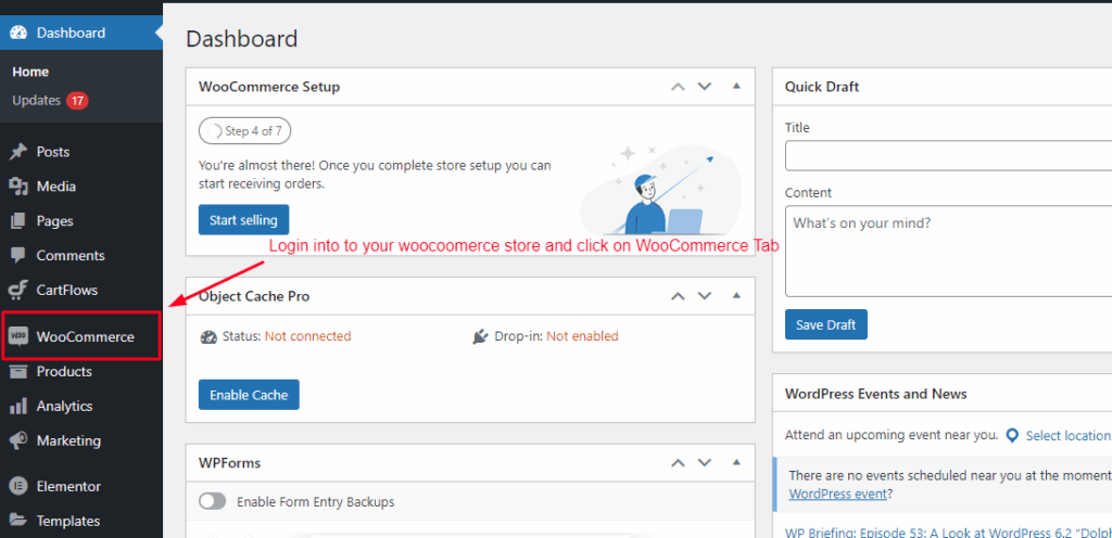 In order to integrate ihakimi with your WooCommerce store, you need to log in to your store and click on WooCommerce Tab.