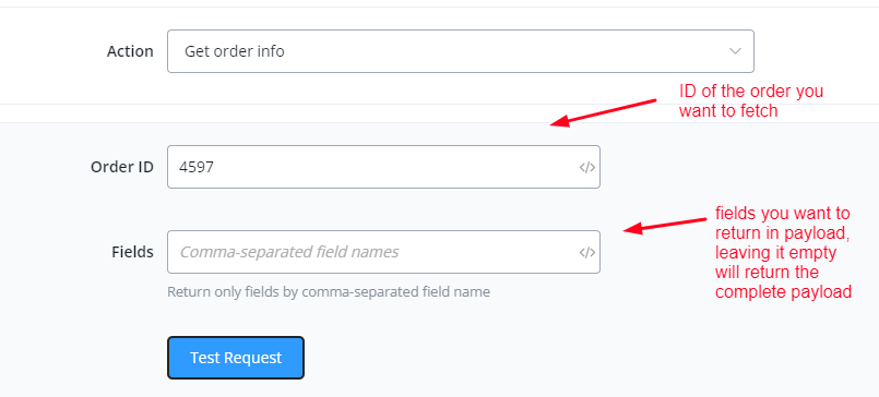 This action is used to fetch order information using order ID.