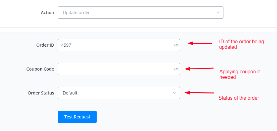 This action is used to update the order information and status using order ID