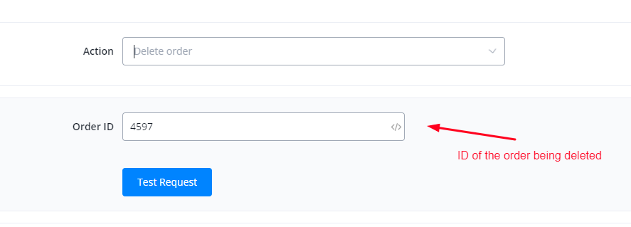 This action is used to delete an order using order ID.