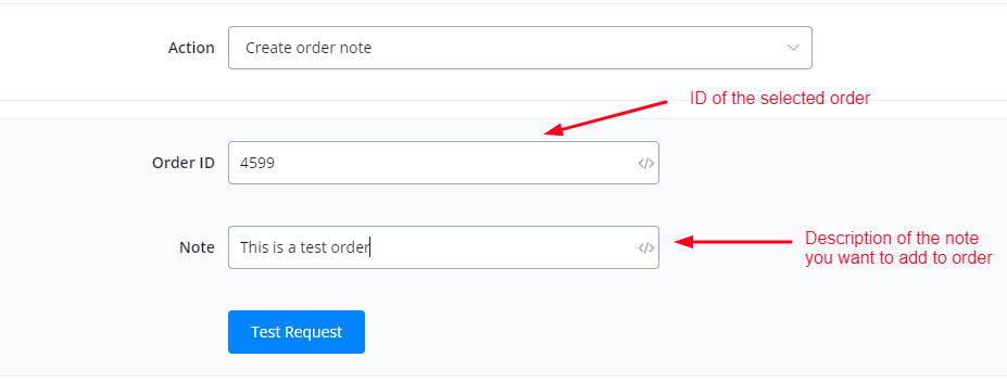 This action is used to create an order note using order ID.