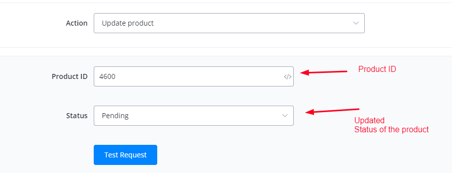 This action is used to update the product details using product ID