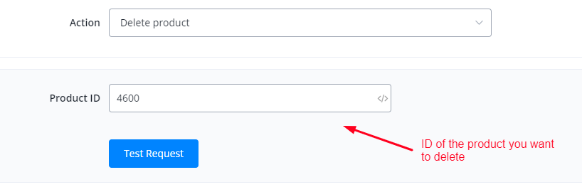 This action is used to delete a product using product ID.