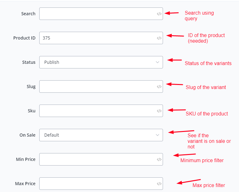 Search For Product Variants
