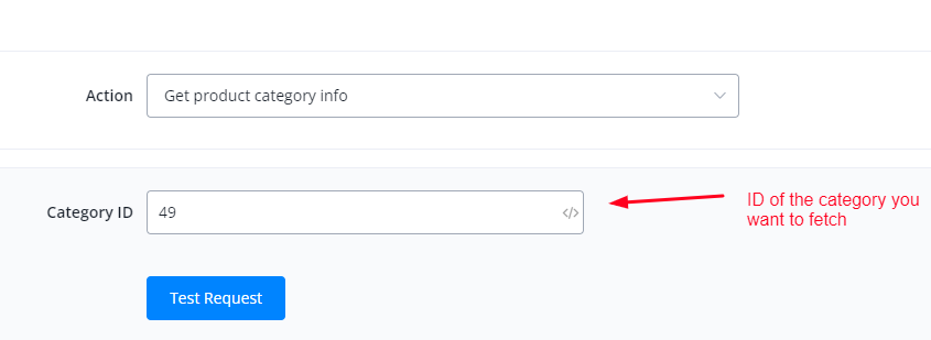 This action is used to fetch information for a category using its category ID.