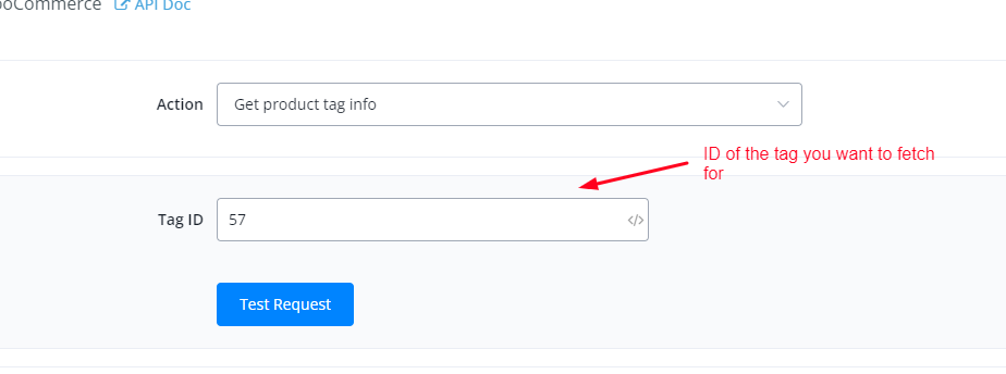 This action is used to fetch information for product tags using tag ID.