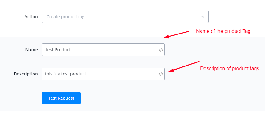 This action is used to create a product tag.