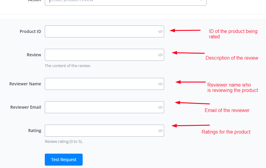 This action is used to create a review for a product.