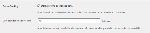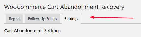 From your dashboard, click on the woocommerce tab and then go to Cart abandonment.