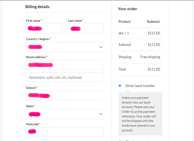 | { “id”: 4597, “parent_id”: 0, “status”: “pending”, “currency”: “AUD”, “version”: “6.9.4”, “prices_include_tax”: false, “date_created”: “2023-04-14T11:01:51”, “date_modified”: “2023-04-14T11:01:51”, “discount_total”: “0.00”, “discount_tax”: “0.00”, “shipping_total”: “0.00”, “shipping_tax”: “0.00”, “cart_tax”: “0.00”, “total”: “350.00”, “total_tax”: “0.00”, “customer_id”: 0, “order_key”: “wc_order_5hKQmDkxUiesi”, “billing”: { “first_name”: “Hammad”, “last_name”: “Siddiqui”, “company”: “”, “address_1”: “ABC Road, Garden City”, “address_2”: “”, “city”: “Karachi”, “state”: “Sindh”, “postcode”: “”, “country”: “Pakistan”, “email”: “[email protected]”, “phone”: “+9230302320964” }, “shipping”: { “first_name”: “Hammad”, “last_name”: “Siddiqui”, “company”: “”, “address_1”: “ABC Road, Garden City”, “address_2”: “”, “city”: “Karachi”, “state”: “Sindh”, “postcode”: “”, “country”: “Pakistan”, “phone”: “” }, “payment_method”: “”, “payment_method_title”: “”, “transaction_id”: “”, “customer_ip_address”: “”, “customer_user_agent”: “”, “created_via”: “rest-api”, “customer_note”: “”, “date_completed”: null, “date_paid”: null, “cart_hash”: “”, “number”: “4597”, “meta_data”: [ { “id”: 6465, “key”: “user_ns”, “value”: “f12372u15376836” } ], “line_items”: [ { “id”: 259, “name”: “DNK Black Shoes – blue”, “product_id”: 375, “variation_id”: 4120, “quantity”: 2, “tax_class”: “”, “subtotal”: “350.00”, “subtotal_tax”: “0.00”, “total”: “350.00”, “total_tax”: “0.00”, “taxes”: […], // 0 items “meta_data”: […], // 1 items “sku”: “”, “price”: 175, “image”: {…}, // 2 keys “parent_name”: “DNK Black Shoes” } ], “tax_lines”: [ ], “shipping_lines”: [ ], “fee_lines”: [ ], “coupon_lines”: [ ], “refunds”: [ ], “payment_url”: “https://shop.businessautomated.io/checkout-2/order-pay/4597?pay_for_order=true&key=wc_order_5hKQmDkxUiesi”, “is_editable”: true, “needs_payment”: true, “needs_processing”: true, “date_created_gmt”: “2023-04-14T11:01:51”, “date_modified_gmt”: “2023-04-14T11:01:51”, “date_completed_gmt”: null, “date_paid_gmt”: null, “currency_symbol”: “$” }  |