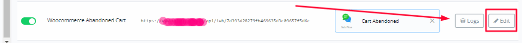 Inside ihakimi, go to tools and inbound webhook, and click on Edit in front of the webhook you choosed for abandoned cart setup.