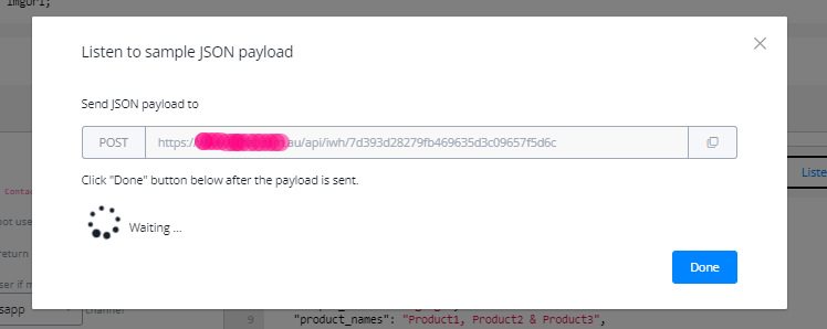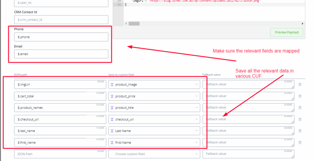 Click on done. And preview the payload. Map all the necessary values from the payload received.