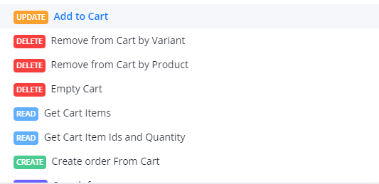 This action is used to get item’s IDs and quantity which are present in the cart.