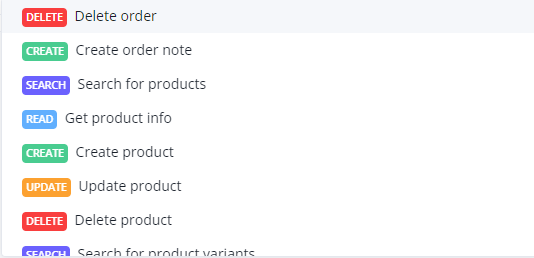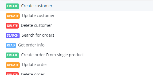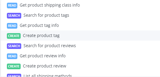 WooCommerce supports the following actions from their API endpoints as follows.