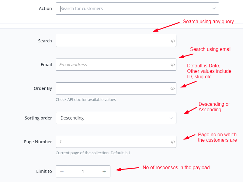 This action is used to search for customers using various parameters and queries.