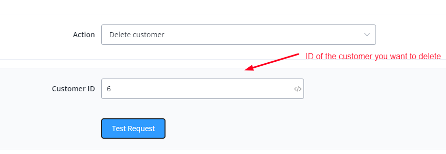 This action is used to delete a particular customer using their customer ID.