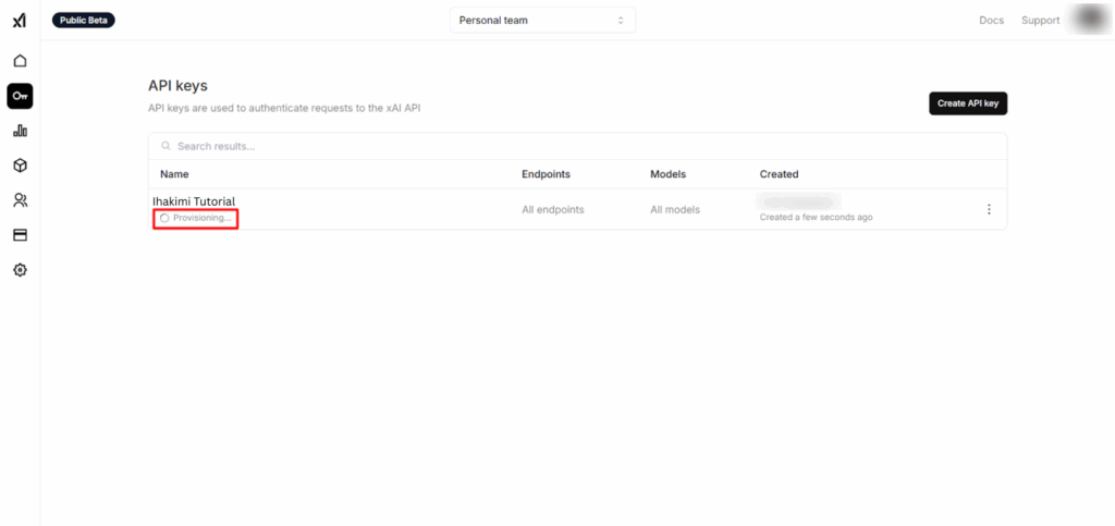 Once you’ve generated the API key, copy it and wait until the provisioning process is completed. This may take a few moments. Ensure that the status indicates the key is ready to use before proceeding.