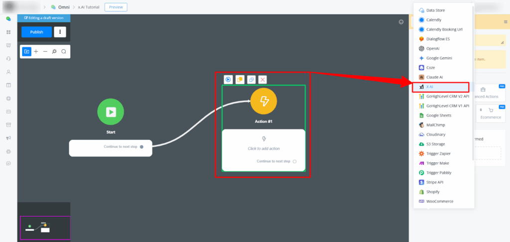 From here, you can configure the Welcome | xAI integration to perform various actions, including Chat Completions.